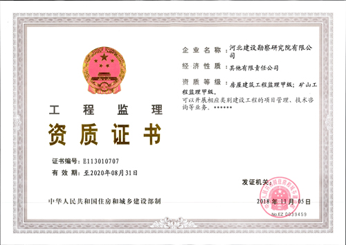 公司獲得礦山工程監(jiān)理甲級(jí)資質(zhì)證書(shū)