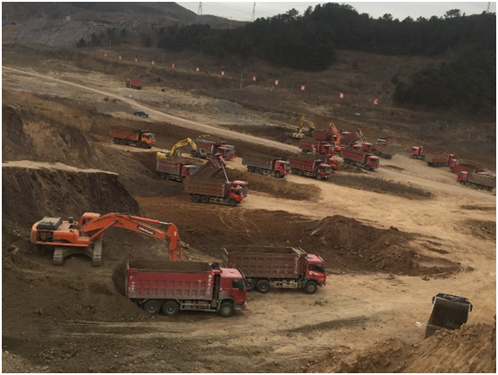 由于本工程所處地質(zhì)條件的特殊性,施工過程中爆破工作量很大,同時由于山路陡峭崎嶇,給排土場道路的施工帶來了很大難度。施工過程中,我單位秉持精心安排、用心服務(wù)的管理理念,開挖過程中合理劃分施工區(qū)域,根據(jù)不同地塊的石方開挖高度采取合理的鉆爆施工方案,既避免了交叉作業(yè)帶來的安全問題同時也提高了施工效率。