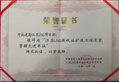由于我公司的出色表現(xiàn),總包方中國寰球工程有限公司北京分公司對我公司和個人進(jìn)行了表彰,授予我公司“質(zhì)量管理先進(jìn)單位”和“HSE管理先進(jìn)單位”,并對周進(jìn)發(fā)、朱凱云、李友峰授予了“優(yōu)秀項目管理者”稱號,對賈沖、冀紫豪、任書星、李昭、張勇、張旺授予了“質(zhì)量管理先進(jìn)個人”稱號,對劉志峰、辛朝友、邢鐸、付嘉嘉、宋江來授予了“HSE管理先進(jìn)個人”稱號,分別頒發(fā)了錦旗、榮譽(yù)證書、獎牌。