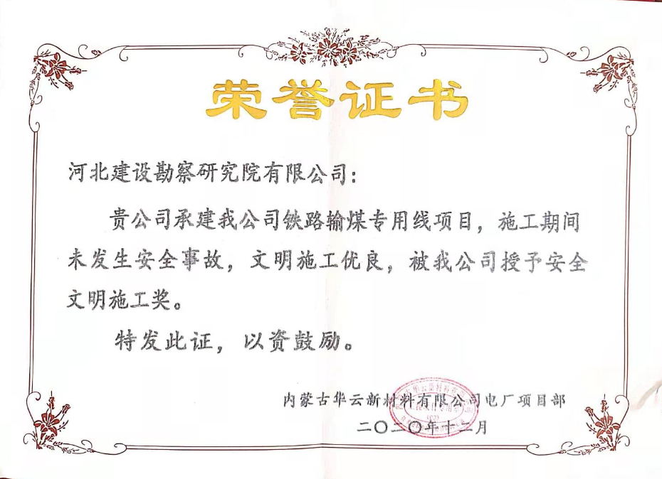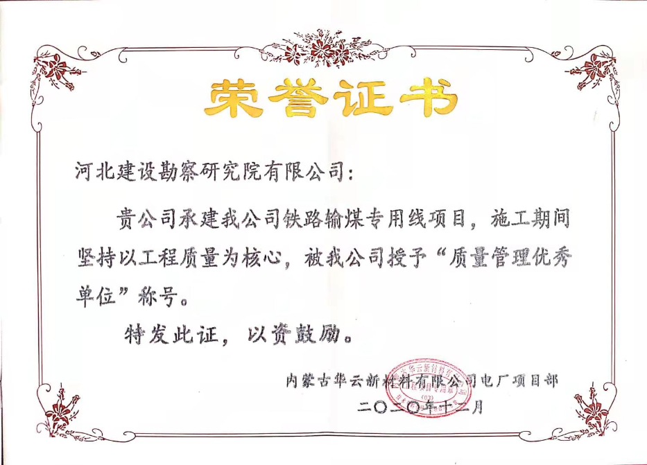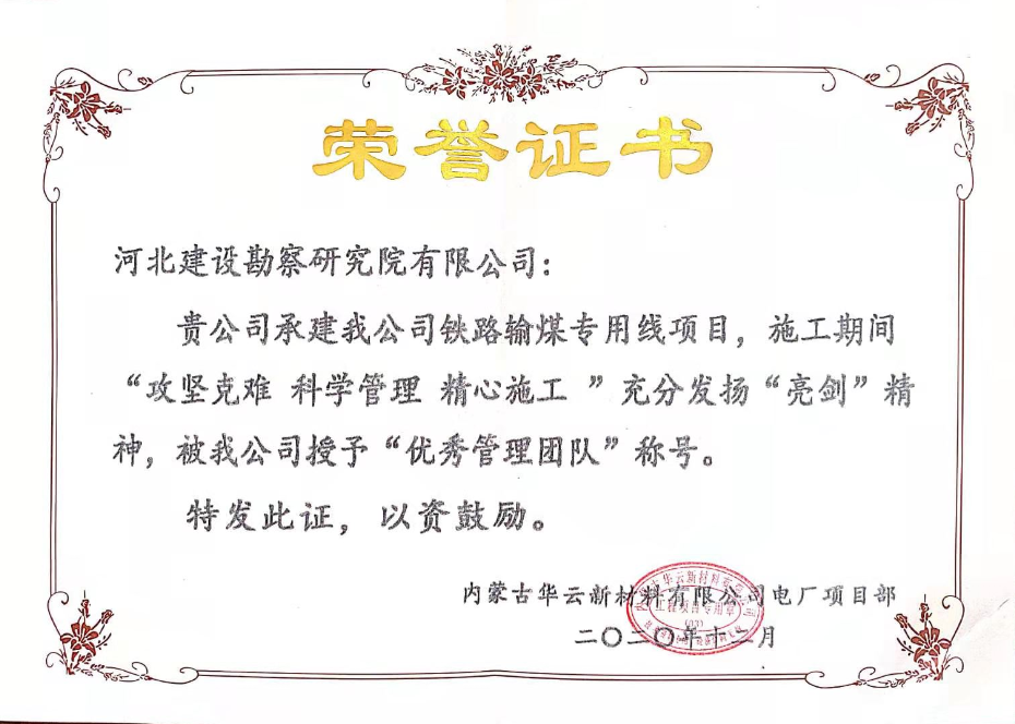日前,由我公司承建的內(nèi)蒙古華云新材料鐵路專用線輸煤系統(tǒng)工程翻車機(jī)深基坑支護(hù)工程已順利完工。業(yè)主內(nèi)蒙古華云新材料有限公司熱電廠向我公司發(fā)來表揚(yáng)函,同時頒發(fā)了“優(yōu)秀管理團(tuán)隊(duì)”、“質(zhì)量管理優(yōu)秀單位”、“安全文明施工”榮譽(yù)稱號。