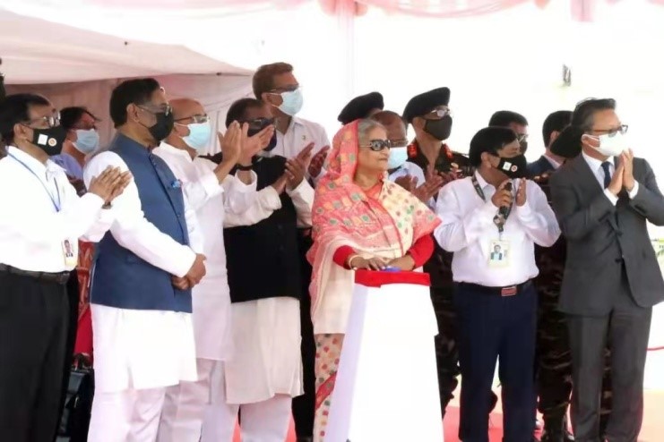 當(dāng)?shù)貢r(shí)間2022年3月21日,由中冀建勘集團(tuán)有限公司參建的孟加拉帕亞拉2×660MW燃煤電站項(xiàng)目(一期)在孟加拉國(guó)總理哈西娜、中國(guó)駐孟加拉大使李極明和參贊劉振華一行見(jiàn)證下舉行了落成典禮大會(huì),孟加拉國(guó)總理哈西娜為項(xiàng)目揭牌。