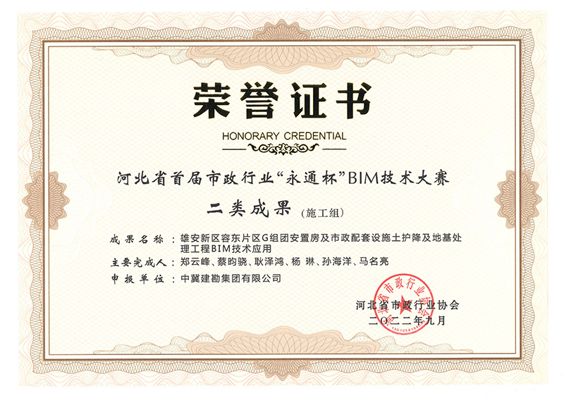 近日,我公司組織參加了由河北省市政行業(yè)協(xié)會舉辦的河北省首屆市政行業(yè)“永通杯”BIM技術(shù)大賽。經(jīng)過激烈的資格預審、成果初評、技術(shù)答辯及終審公示等程序,“雄安新區(qū)容東片區(qū)G組團安置房及市政配套設施土護降及地基處理工程BIM技術(shù)應用”項目榮獲施工組二類成果,“河北科技產(chǎn)業(yè)綜合樓”項目榮獲施工組三類成果。