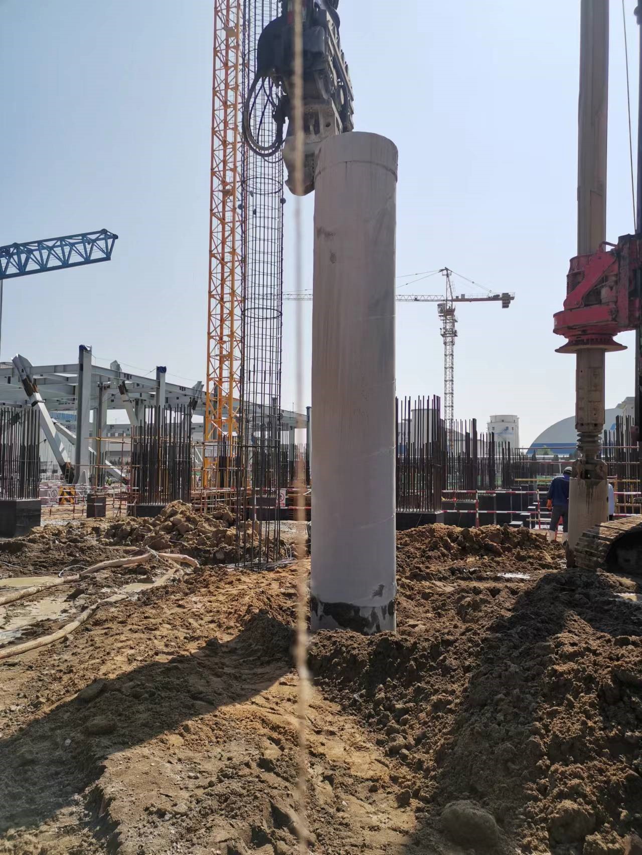 施工期間受中電建核電工程有限公司委托進(jìn)行120T塔機(jī)樁基礎(chǔ)施工,包括6根樁徑800mm鉆孔灌注樁,樁長33.3m,灌注樁樁身采用強(qiáng)度等級C35混凝土。