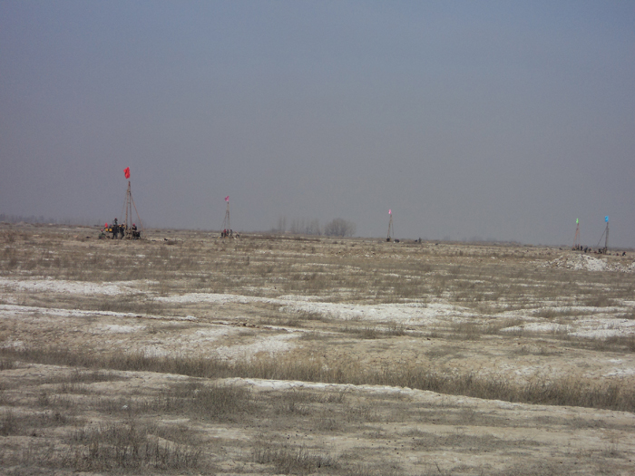 擬建項目位于新疆自治區(qū)五家渠市北工業(yè)區(qū),占地面積6300畝,總建筑面積60萬平米,總投資120—140億元。該工程勘察為一期工程,包括供熱站、合成氨及硫酸廠、物流區(qū)、原料糖倉庫及烘干車間、水廠等。擬建場地地表植被稀少,地表鹽漬化現(xiàn)象顯著,屬于荒漠地貌。