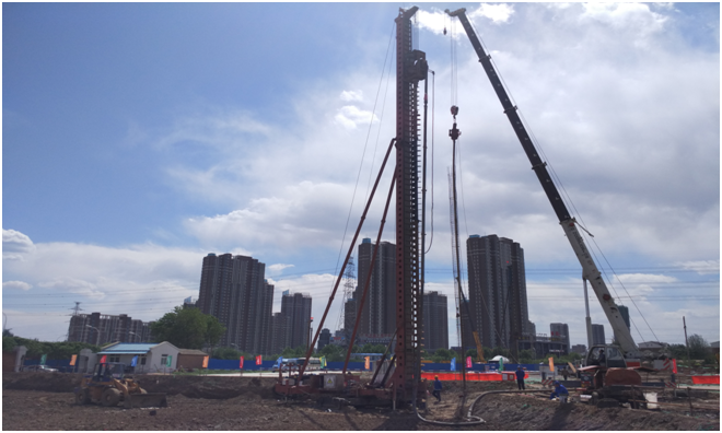 該工程自2016年3月23日開工至2016年8月11日完成全部工作內(nèi)容。其中包括φ0.5mCFG樁1297根;φ0.6m混凝土灌注樁1296根;土方開挖19352.05m³。