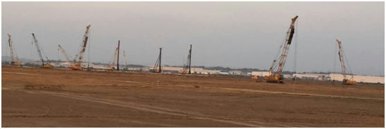本工程位于洛陽市吉利區(qū)中國石化洛陽分公司廠區(qū)東側(cè)約360m處的范河以東至207國道的區(qū)域,北側(cè)至北環(huán)路,南側(cè)至市政規(guī)劃路。主要有新建8臺浮頂儲罐(共兩個罐組)及相應(yīng)的工藝管網(wǎng)、自動控制系統(tǒng)等相應(yīng)的場地平整及強夯施工,本工程表皮植被清除量共計完成63674.44m³,土方開挖回填量210548.46m³,庫區(qū)深坑強夯面積12575㎡,群夯試驗4500㎡,點夯試驗5個點。