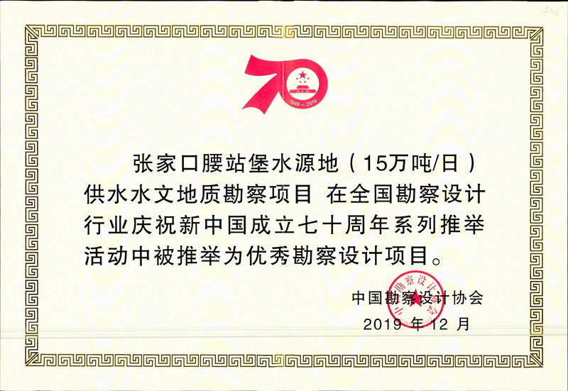 其中,我公司榮獲“優(yōu)秀勘察設(shè)計(jì)企業(yè)”榮譽(yù)稱號(hào),董事長(zhǎng)韓立君榮獲“優(yōu)秀企業(yè)家”稱號(hào),總工程師聶慶科榮獲“科技創(chuàng)新帶頭人”榮譽(yù)稱號(hào)。我公司完成的張家口腰站堡水源地(15萬(wàn)噸/日)供水水文地質(zhì)勘察項(xiàng)目、廣西信發(fā)鋁電有限公司年產(chǎn)160萬(wàn)噸氧化鋁赤泥堆場(chǎng)巖土工程勘察項(xiàng)目被推舉為優(yōu)秀勘察設(shè)計(jì)項(xiàng)目。