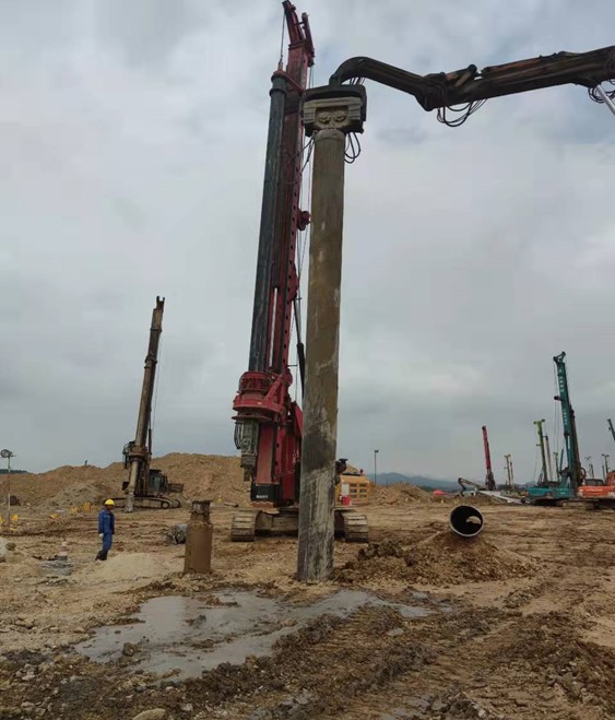 本工程自2021年01月18日開工,2021年09月24日完工。共完成旋挖灌注樁直徑(600mm)4776根、直徑(800mm)170根,混凝土等級C30、C35P8兩種等級,直徑600mm樁端入中風化板巖≥1.2m,直徑800mm樁端入中風化板巖≥1.6m。