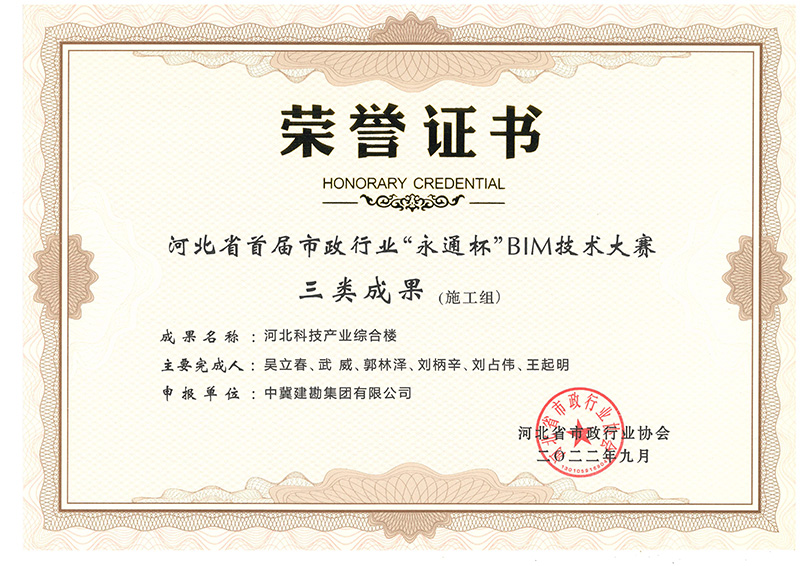 近日,我公司組織參加了由河北省市政行業(yè)協(xié)會舉辦的河北省首屆市政行業(yè)“永通杯”BIM技術(shù)大賽。經(jīng)過激烈的資格預審、成果初評、技術(shù)答辯及終審公示等程序,“雄安新區(qū)容東片區(qū)G組團安置房及市政配套設施土護降及地基處理工程BIM技術(shù)應用”項目榮獲施工組二類成果,“河北科技產(chǎn)業(yè)綜合樓”項目榮獲施工組三類成果。