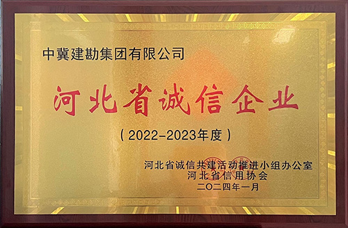 根據(jù)河北省信用協(xié)會(huì)文件“冀信協(xié)會(huì)字[2024]6號(hào)”文《關(guān)于公布2022-2023年度“河北省誠(chéng)信企業(yè)”的通知》,我公司被河北省誠(chéng)信共建活動(dòng)推進(jìn)小組辦公室和河北省信用協(xié)會(huì)評(píng)為“河北省誠(chéng)信企業(yè)”。