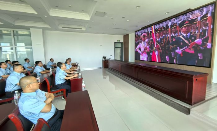 當(dāng)威武雄壯的受閱方隊邁著鏗鏘有力的步伐走過,當(dāng)各類現(xiàn)代化裝備依次亮相,當(dāng)戰(zhàn)機(jī)編隊劃破長空,強(qiáng)大的陣容、恢宏的氣勢,讓觀看直播的職工們心潮澎湃,會議室里不時響起陣陣驚呼聲。