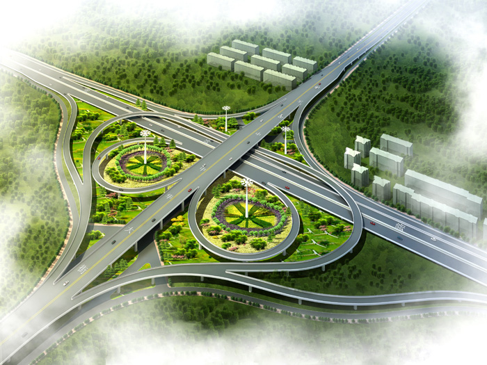 邯鄲市中華大街~南環(huán)路全互通立交橋,設(shè)計為車速60km/h,雙向八車道全互通組合式三層立交,其中南環(huán)路為第二層,上跨地面層,凈空3.5米,中華大街為第三層, 上跨南環(huán)路,凈空4.5米。右轉(zhuǎn)匝道和左轉(zhuǎn)半定向匝道設(shè)計車速40km/h,右轉(zhuǎn)匝道凈寬7米,左轉(zhuǎn)半定向匝道凈寬8米,環(huán)形匝道設(shè)計車速30km/h,凈寬7米。整座立交橋占地322畝,屬特大型城市橋梁工程,預計投資約2.49億元。