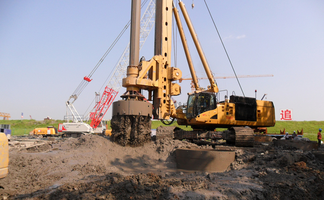 工程采用大直徑旋挖鉆機(jī)成孔,氣舉反循環(huán)二次清孔。
