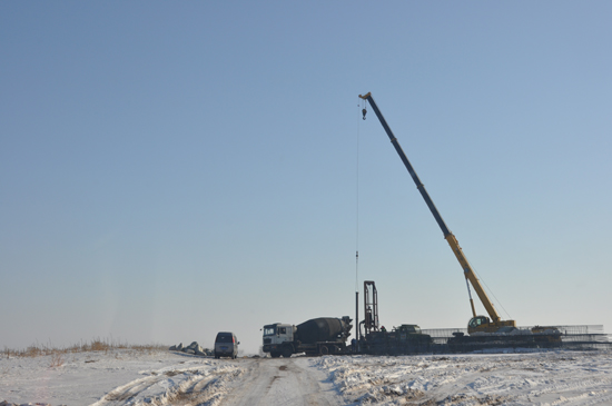 華能大慶綠源風(fēng)電五棵樹風(fēng)電場以及華能大慶綠源風(fēng)電新立風(fēng)電場樁基工程均位于黑龍江省大慶市大同區(qū)五棵樹以北。本工程為風(fēng)機(jī)承臺下鉆孔灌注樁施工,地層主要以粉土為主。施工時采用回轉(zhuǎn)鉆機(jī)反循環(huán)成孔,本項目共完成直徑800mm鉆孔灌注樁814根,灌注混凝土14133.43 m3,鋼筋加工1573.71t,后壓漿1440m3。